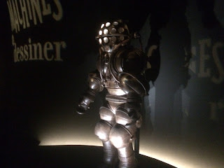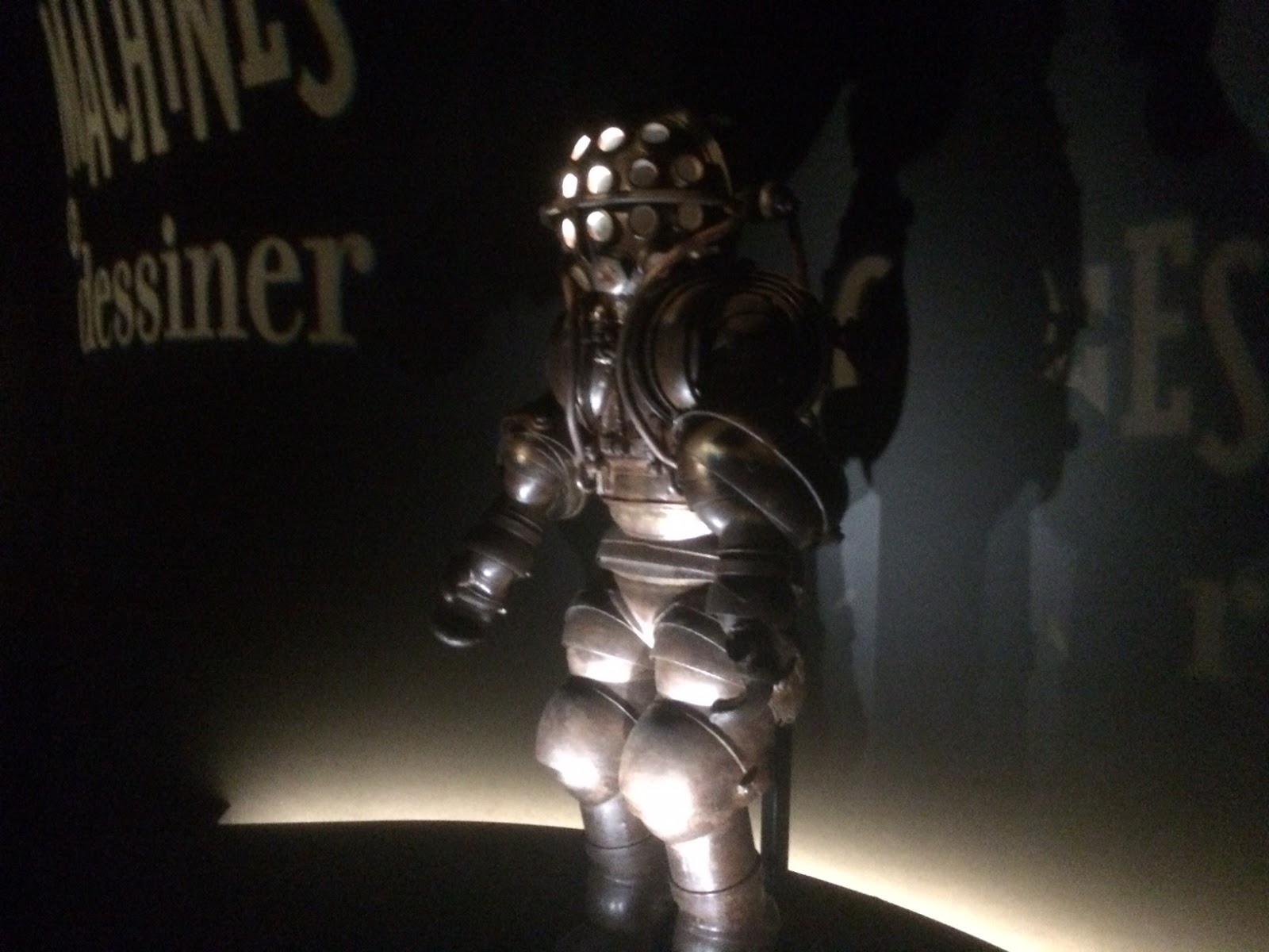 Mas o acontecimento a não perder para os fãs de Schuiten e Peeters é a exposição Machines a Dessiner, que está até meados de Março no Musée D'Arts et Métiers, em Paris. Uma excelente exposição, num museu que vale a pena explorar (o célebre Pêndulo de Foucault está lá) e cuja história está intimamente ligada à dos criadores das Cidades Obscuras. Tendo apresentado uma proposta no concurso para a remodelação do dito Museu que ficou em segundo, Schuiten e Peeters tiveram o "prémio de consolação" de decorarem a estação de Metro que serve o Museu e que Schuiten transformou no interior do submarino Nautilus.