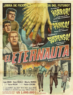 Publicada ao longo de dois anos na revista HORA CERO SEMANAL entre 1957 e 1959, El Eternauta é o relato da invasão da cidade de Buenos Aires por forças extraterrestres, relato que é feito por um dos sobreviventes, Juan Salvo, a um escritor de BD que, embora nunca seja nomeado, tudo indica que seja o próprio autor, pois é a casa onde vivia o escritor que Solano López desenha aparecendo assim Oesterheld como personagem da sua própria história, num exercício de meta-ficção.