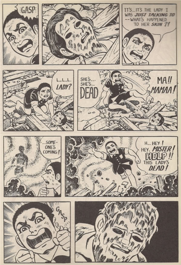 Vencidas essas ténues barreiras culturais, o leitor descobre uma história notável e ao mesmo tempo terrível. Apesar do seu aspecto caricatural, o traço de Nakazawa consegue-nos transmitir perfeitamente a angústia de Gen ao ver os seus pais soterrados nos escombros; o sofrimento dos moribundos que arrastam as carnes derretidas pela bomba; o desespero daqueles que perderam tudo e para quem continuar vivo significa apenas o prolongar da agonia; a impotência dos que, tendo escapado aparentemente ilesos, vêem a radiação corroer-lhes o corpo; o comportamento mesquinho das pessoas, quando as necessidades básicas da sobrevivência se sobrepõem aos valores morais, como a caridade e amizade; o ridículo de um grupo de sobreviventes que apedreja o cadáver de um americano, como se isso lhes permitisse vingar a destruição das suas vidas... Enfim, todos os cambiantes de um quadro complexo, mas terrivelmente real, estão nesta história, bem reveladora da capacidade da BD para transmitir de forma compreensível toda a dimensão de uma tragédia impensável, mas que não pode ser esquecida.