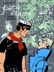 Uma obra só possível graças ao dinamismo e persistência de Geraldes Lino, que conseguiu juntar 45 autores, entre desenhadores e argumentistas, que assinam 43 histórias de uma página, todas inéditas (com a excepção da história de Marco Mendes, que recupera uma homenagem ao quadro “Nighthawks” de Edward Hopper, feita para a Capital da Cultura Guimarães 2012) dedicadas à criação maior de Hugo Pratt que tanto marcou uma geração de leitores que a descobriram nas páginas da revista “Tintin”, nos anos 70. Se o espaço limitado de uma página não permite muito grandes desenvolvimentos, há ainda assim, espaço para algumas abordagens interessantes e para reencontrar autores (mais ou menos) desaparecidos, como Arlindo Fagundes, Carlos Zíngaro, Nazaré Álvares, Renato Abreu e Ricardo Ferrand, que recupera aqui o seu Molto Portoghese, deliciosa personagem nascida noutra publicação de Geraldes Lino, o Tertúlia BDZine, para além da surpresa de Regina Pessoa, nome grande da animação nacional, que assina a magnífica capa.